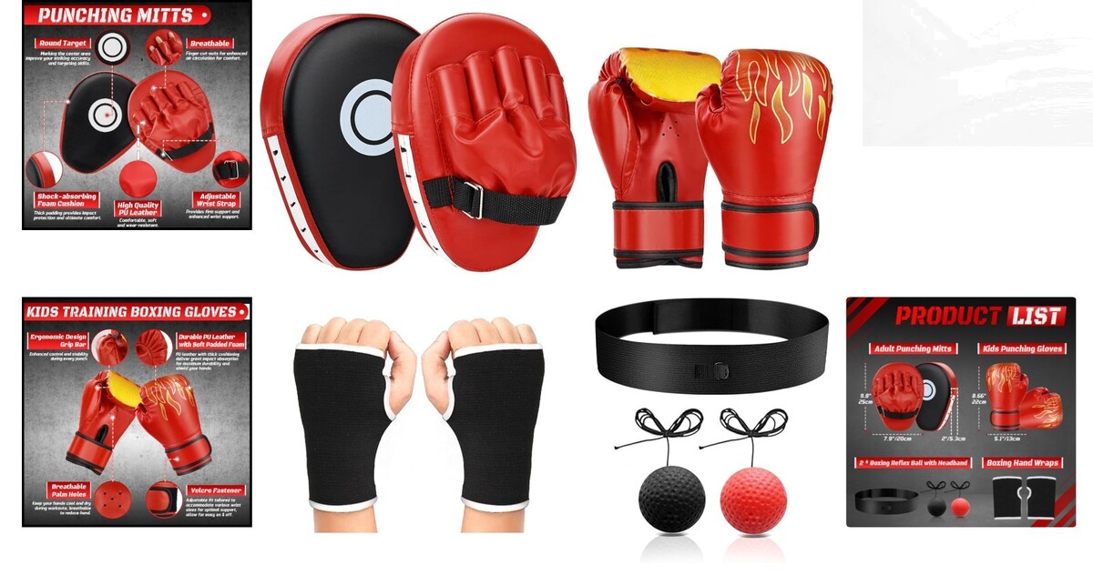 Kids Boxing Training Set: 4-In-1 Mitts, Gloves & Reflex Ball for Fitness Fun