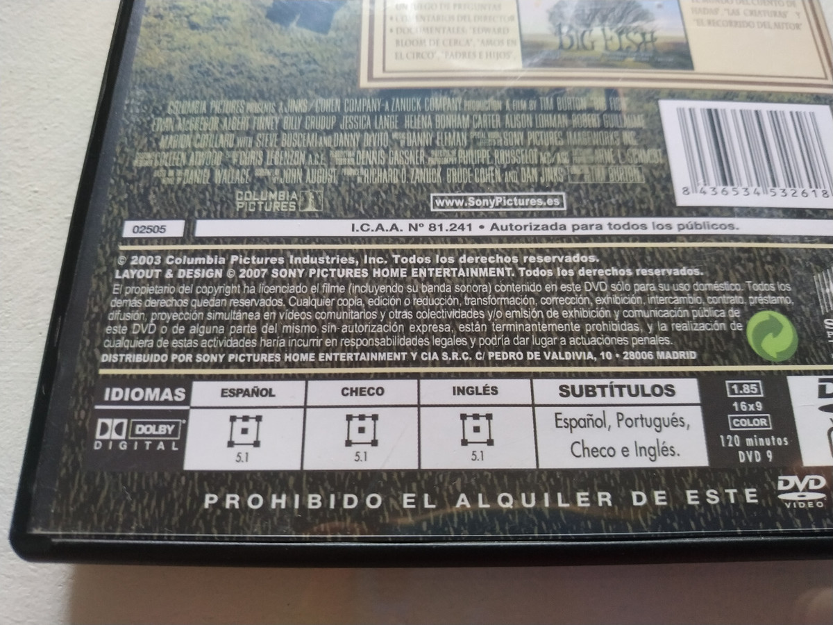 Big Fish Tim Burton Ewan McGregor Jessica Lange - DVD Regione spagnola inglese 2 del mattino