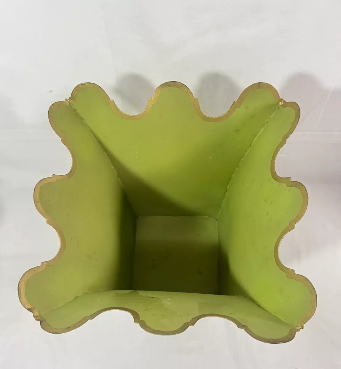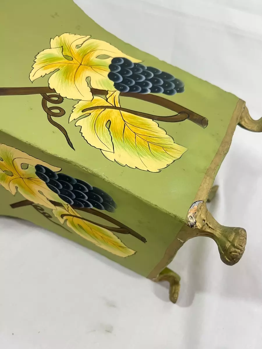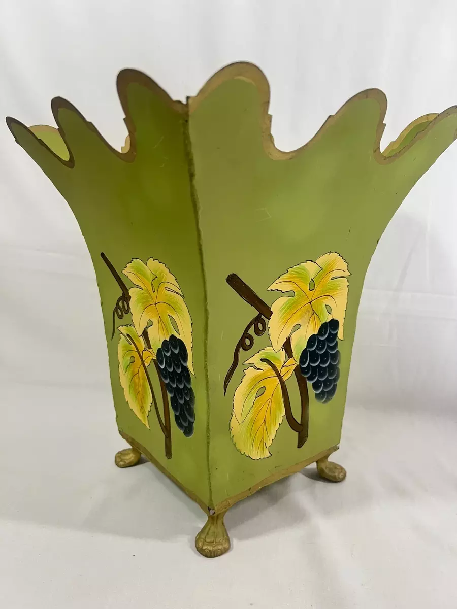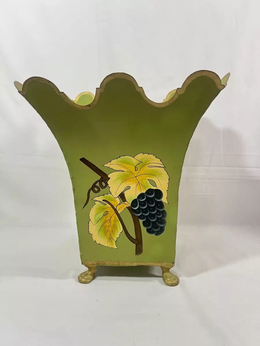 Tole Tuscan Vineyard Grapes Green Scalloped Metal Footed Planter Cachepot