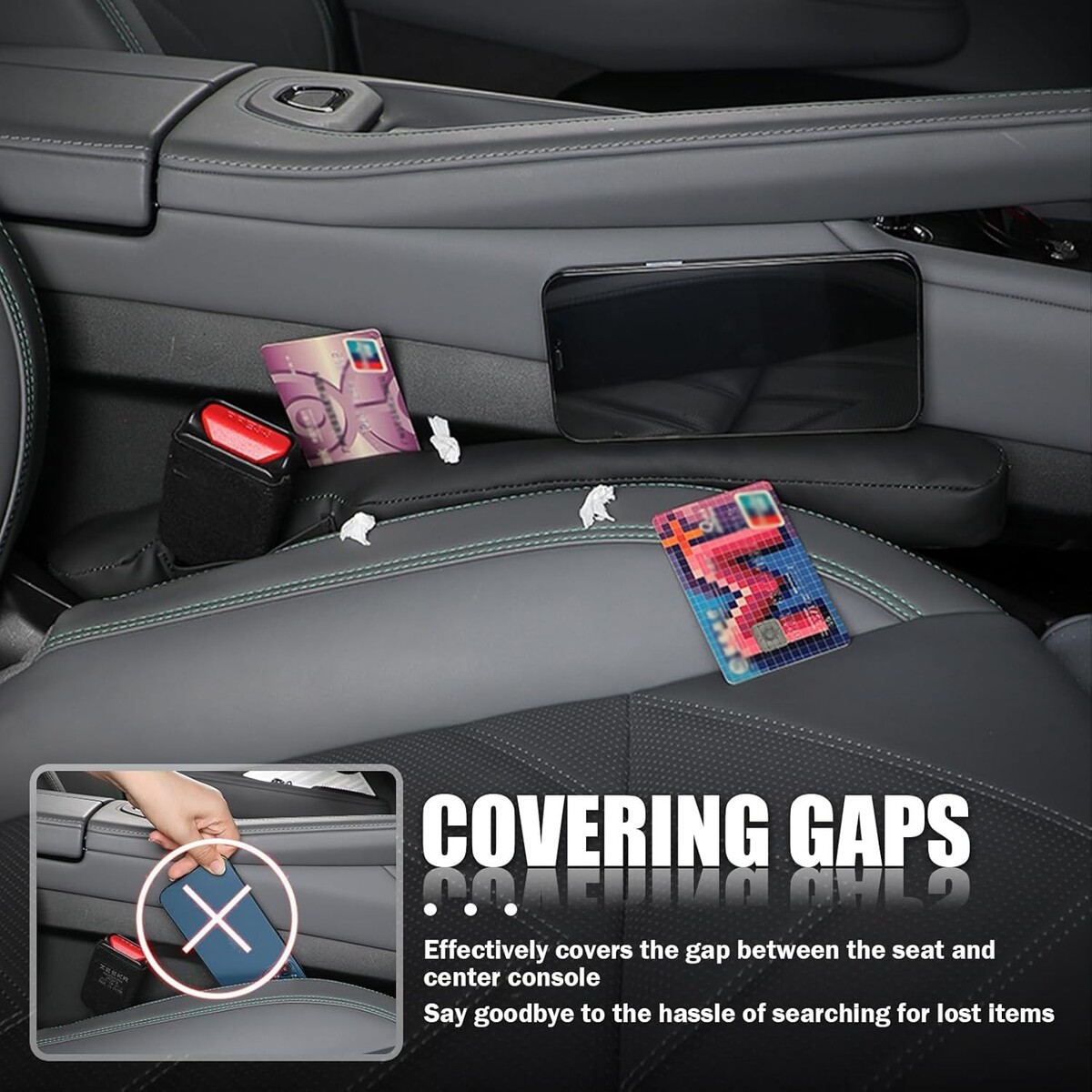 Effective Gap Covering: Prevents small items like phones, car keys, and coins from falling into the crevice, saving you from the frustration of searching for lost belongings.