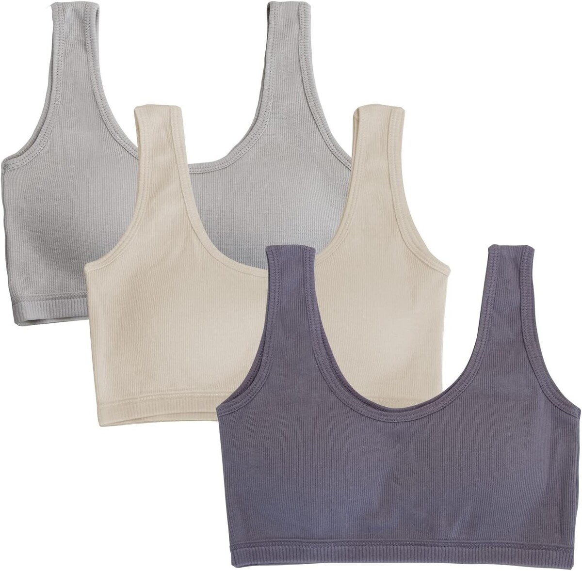 Comfortable Organic Cotton Training Bras for Girls 8-10 - 3 Pack Crop Tops