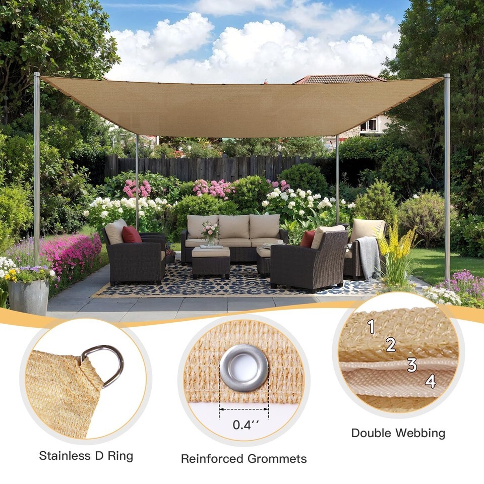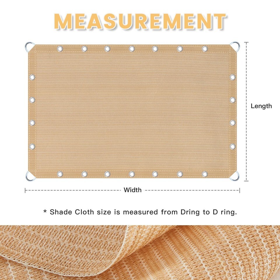 VICLLAX 90% Shade Fabric Sun Shade Cloth with Reinforced Grommets & D-Ring Eyele