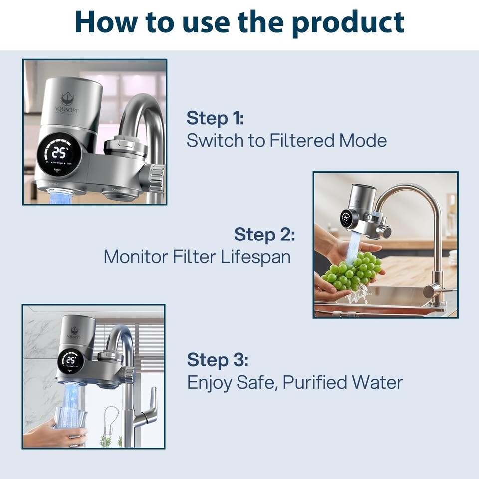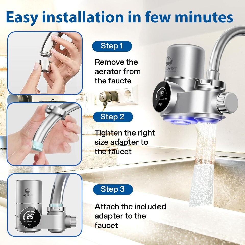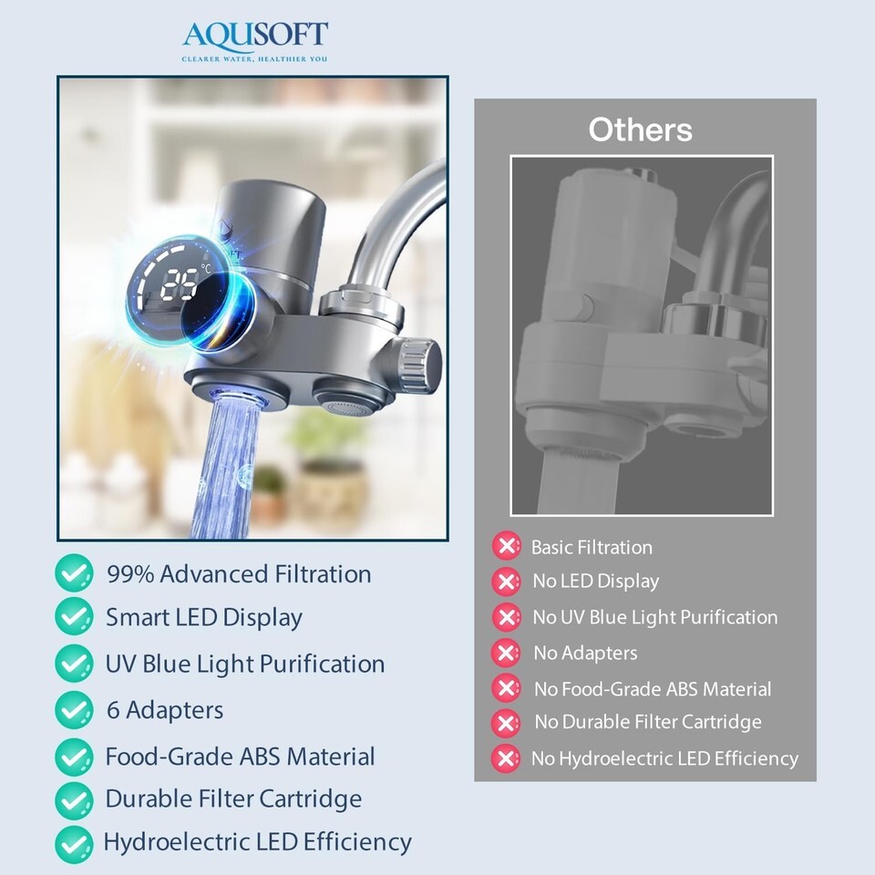 AQUSOFT Faucet Mount Water Filter - LED Sink Water Filter | 99% Filtration New 2