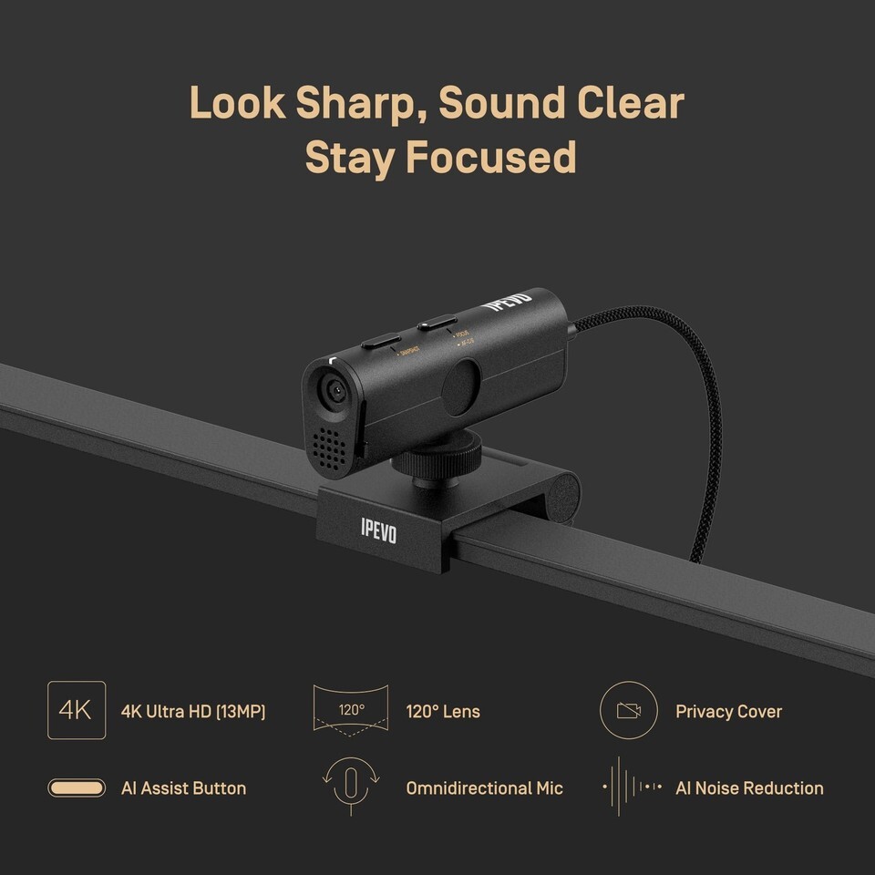 IPEVO VurboCam 4K Vurbo.ai-Powered Webcam, Ultra HD 13MP USB Camera for PC/Mac,