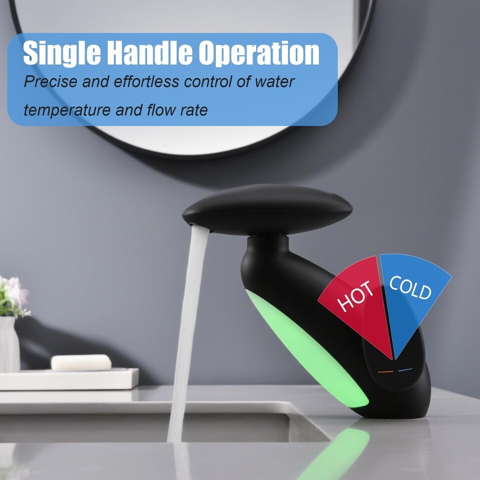 LED Bathroom Sink Faucet with Pull Out Sprayer, 4 Modes Bathroom Faucet Waterfal