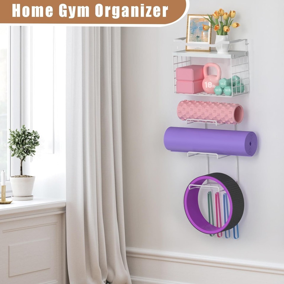 LIDTOP Yoga Mat Holder White, Wall Mount Yoga Accessory Mats Storage Rack, Home