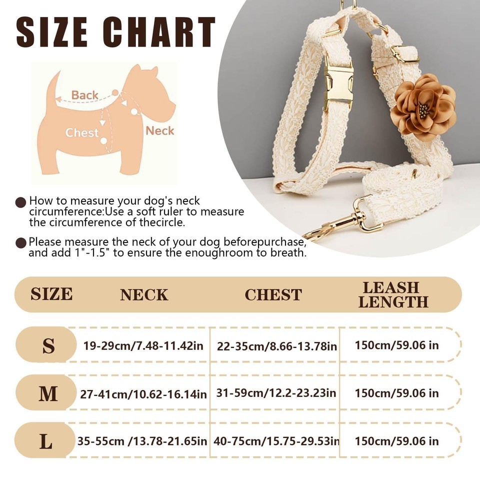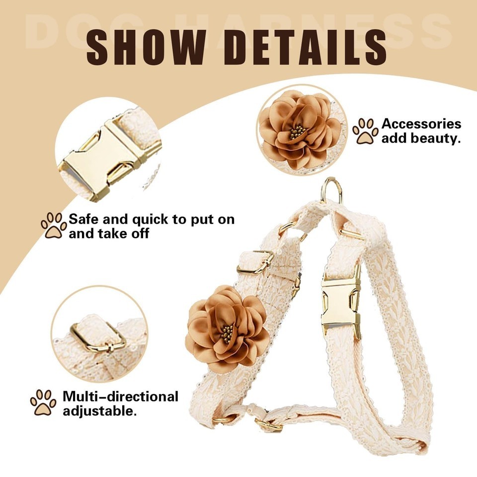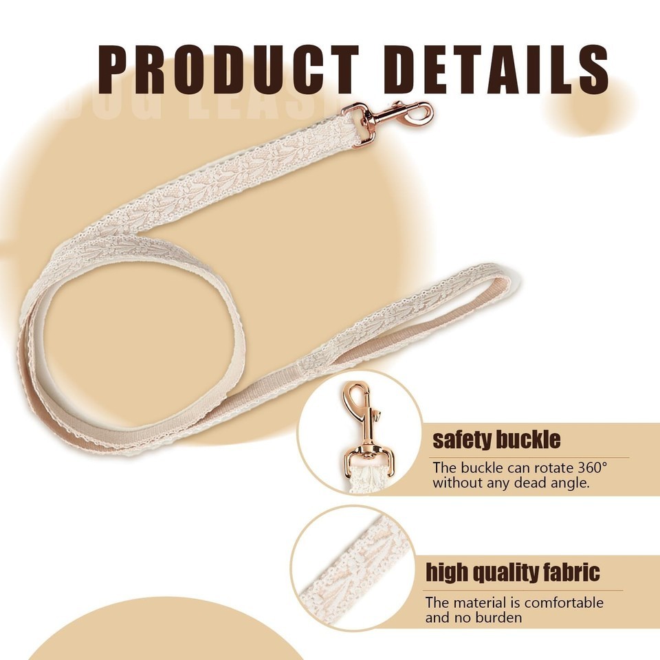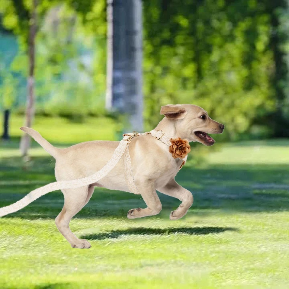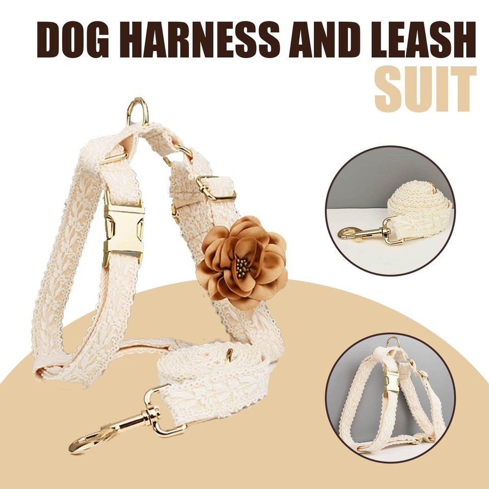 HQREA White Dog Harness & Leash Set, Adjustable Lace for Small Girl Dogs