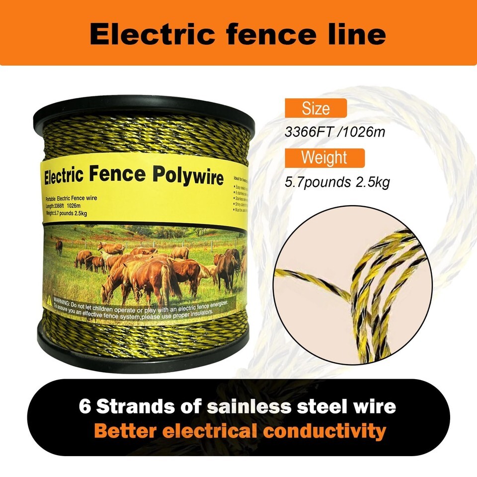 DSZBESTER Upgraded Electric Fence Polywire 3366ft 1/8" Dia 6-Strand Stainless St