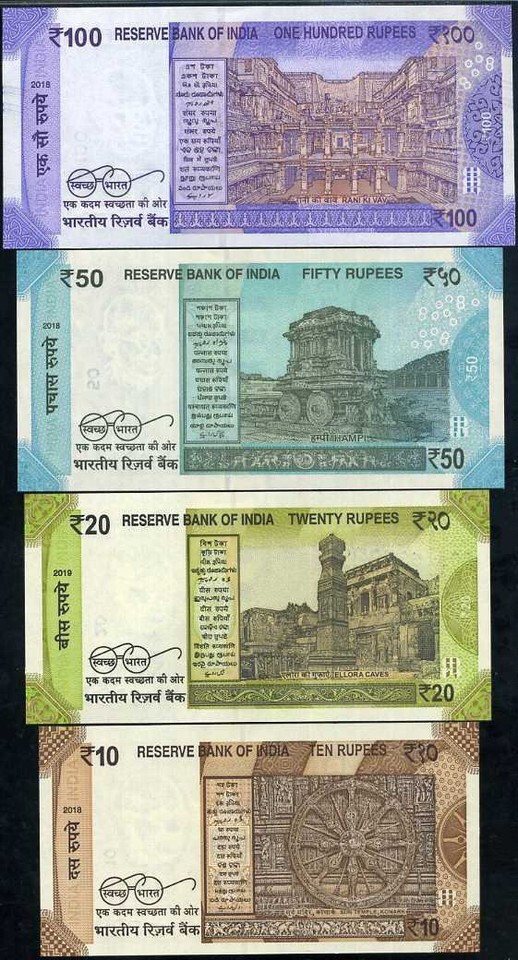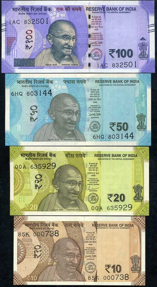India, Set of 4 Notes 100,50,20,10 Rupees, and 50 similar items
