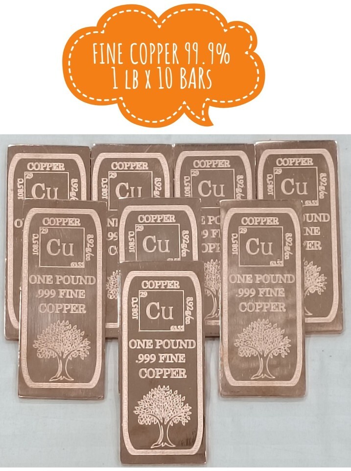 1 Lb x 10 Pcs .999 Copper Bullion Bars ( and similar items