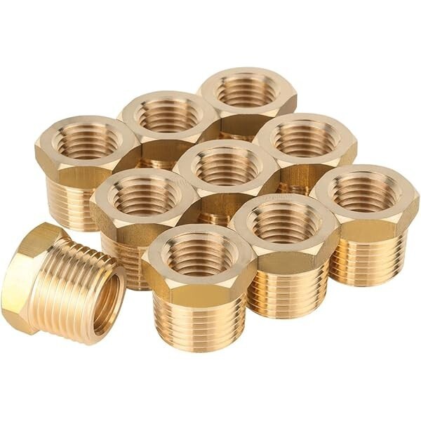 100 Pcs, Brass 1" Male x 1/2" Female Bush BSP, Pipe Reducer Threaded Fittings