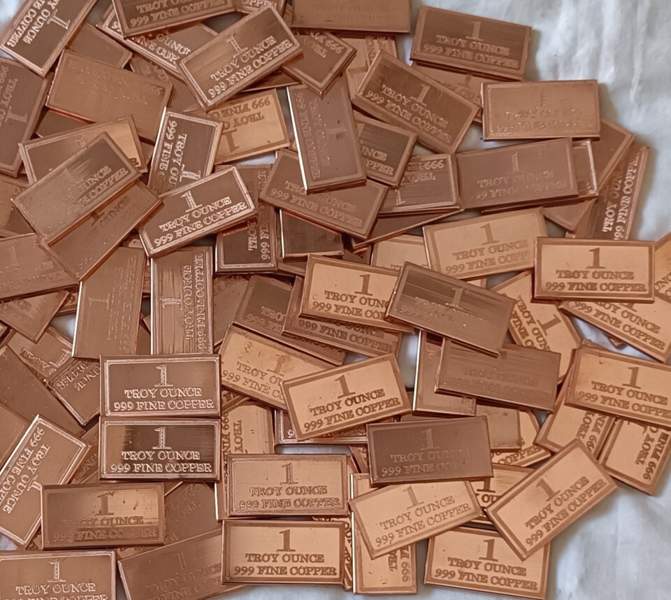 Lot of 50 x 1 oz, Copper Bullion Bar .999 Fine, Pure copper