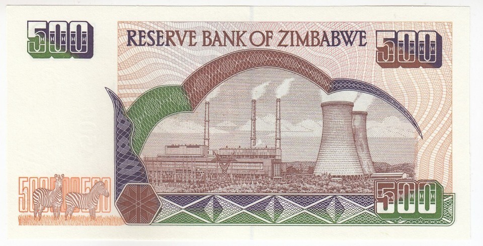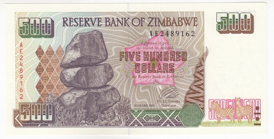 Zimbabwe,500 Dollars,2001,Reserve Bank of Zimbabwe, P10, UNC- show original t...