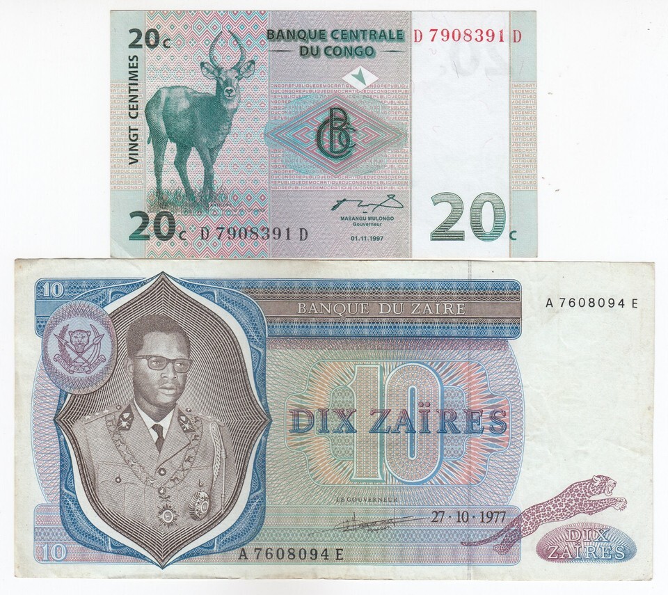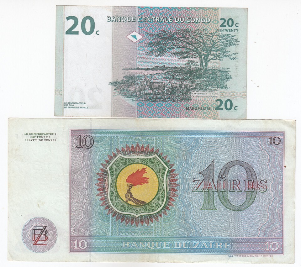 Congo, Zaire, set of 2 banknotes, different countries collection- show origin...
