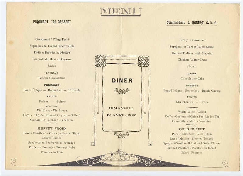 French Line Dinner Menu Paquebot De Grasse and similar items