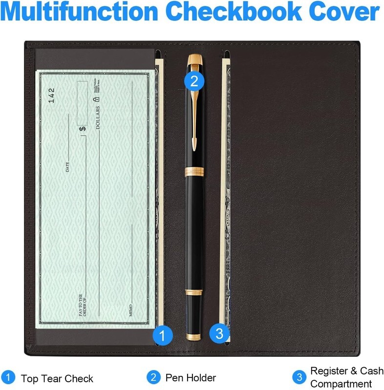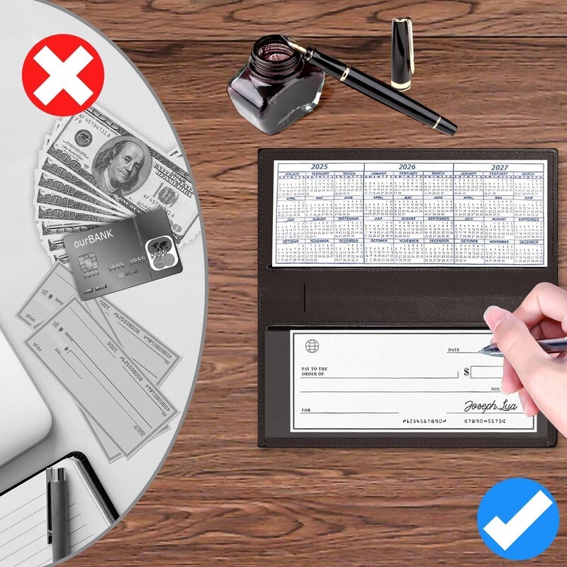 Resilient Material: Constructed from high-grade PU leather and water-resistant fabrics, it effectively shields checks from wear and tear, guaranteeing durability and reducing the need for replacement