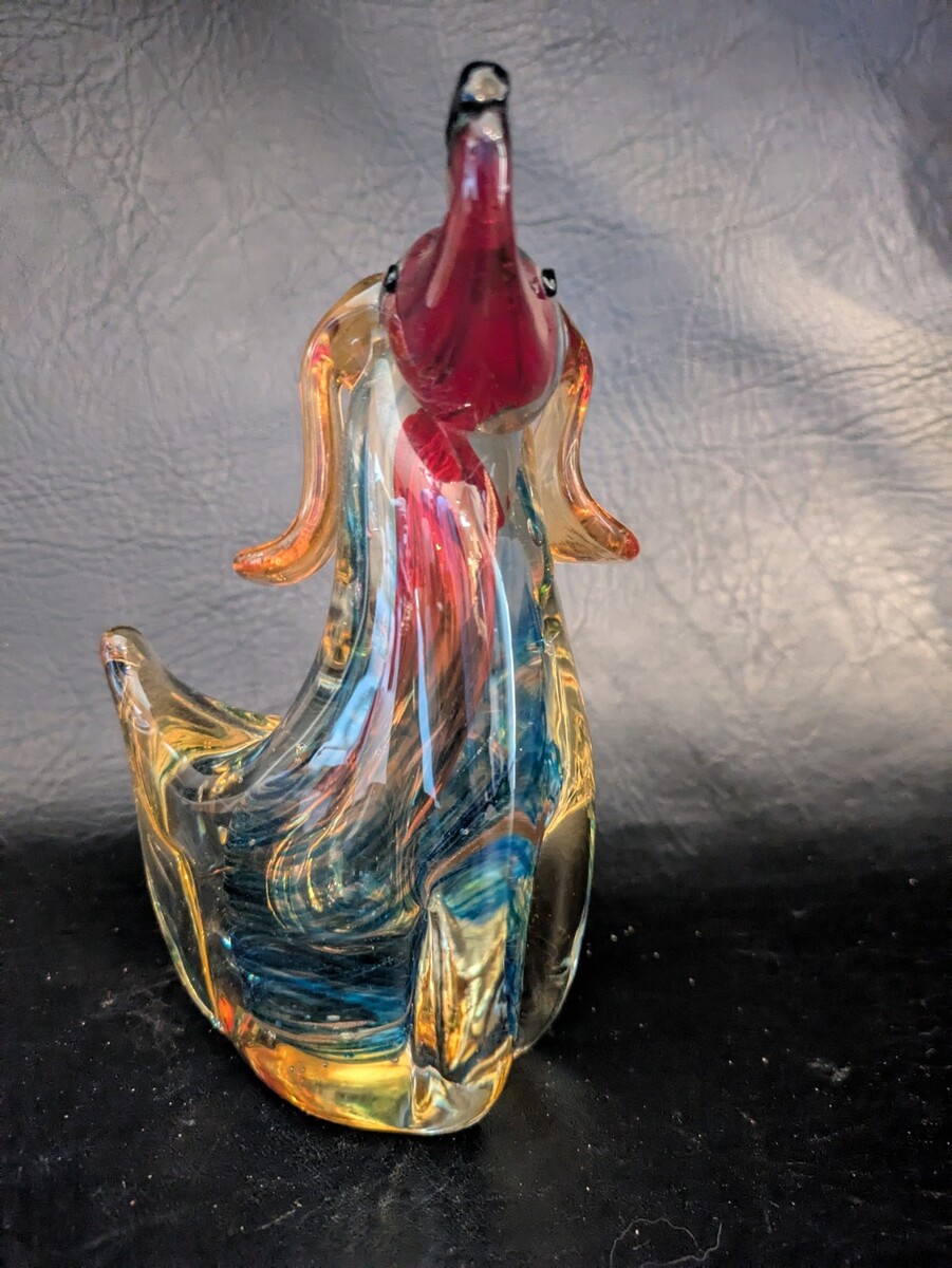 Dog Sitting Venetian Murano Art Glass Statue JICO Style 7 In Red Blue Yellow