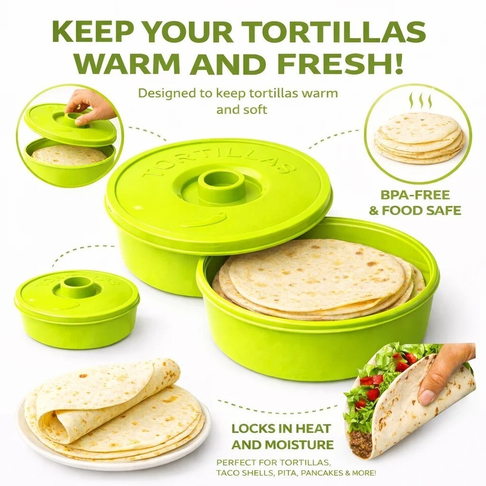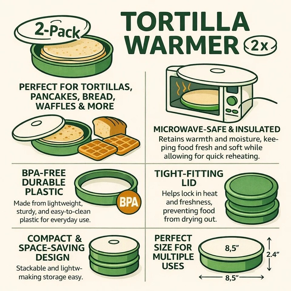 2 Pack 8.5" Tortilla Warmer with Lid BPA Free Microwave Safe Holder