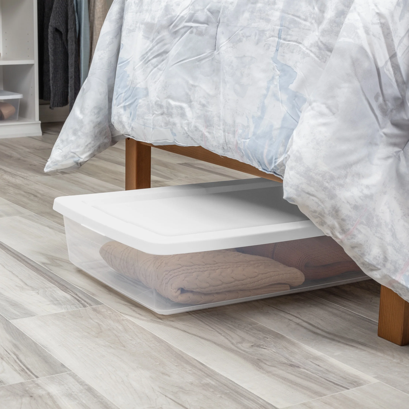 Storage Bin, 41 Quart Clear Plastic Underbed Storage Container with Snap-On Lid, White