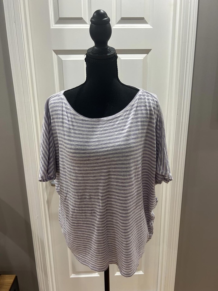 Lafayette 148 New York Lightweight Striped Short Sleeve Top