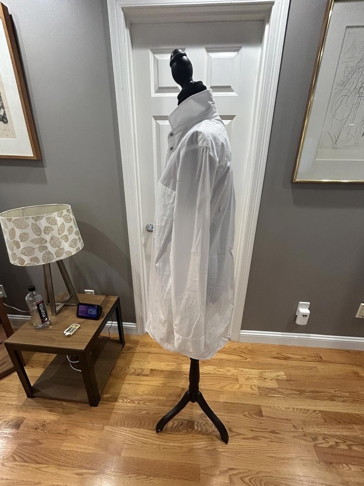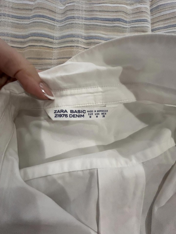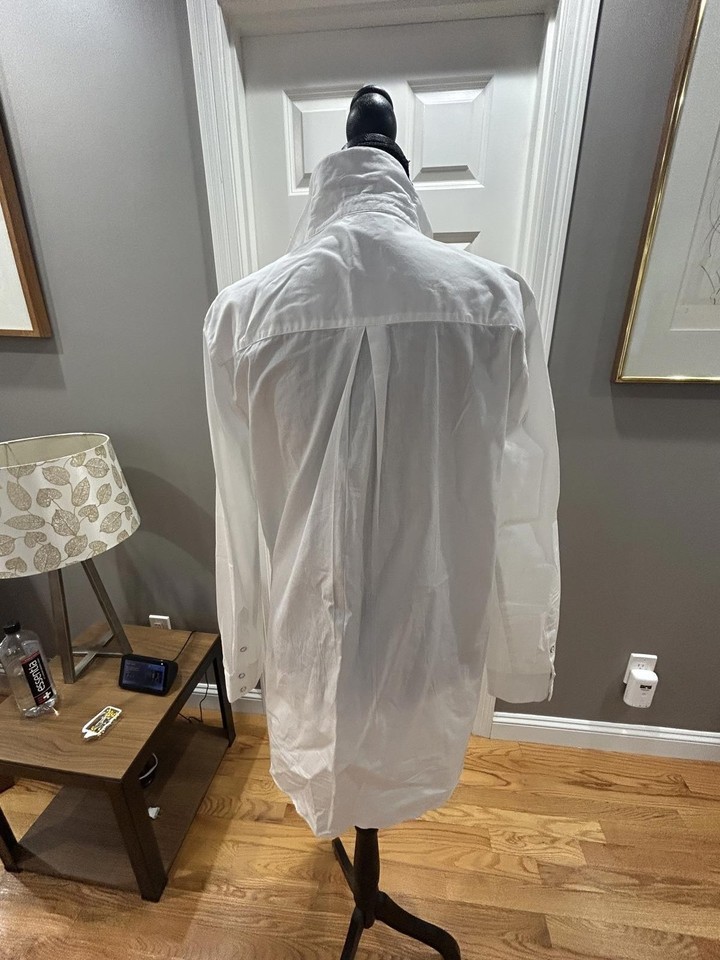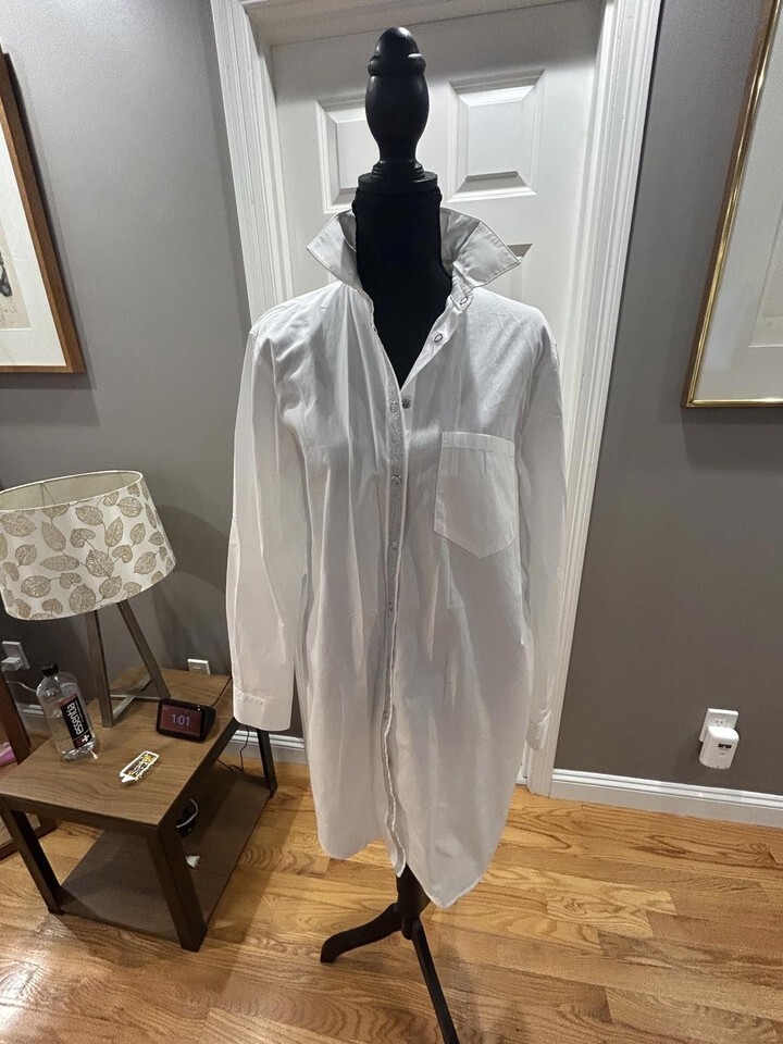 ZARA White Long Sleeve Button-Up Shirt Dress with Silver Detail Sz M