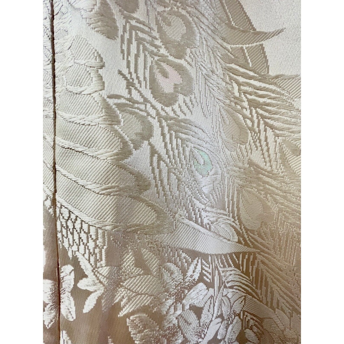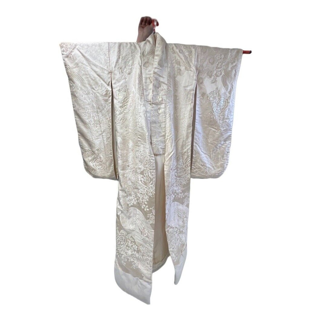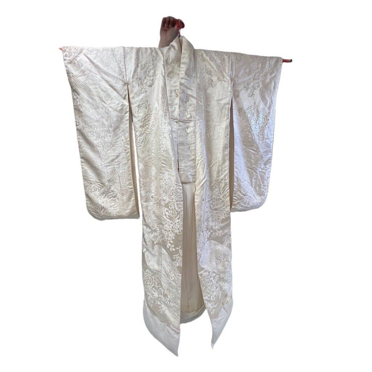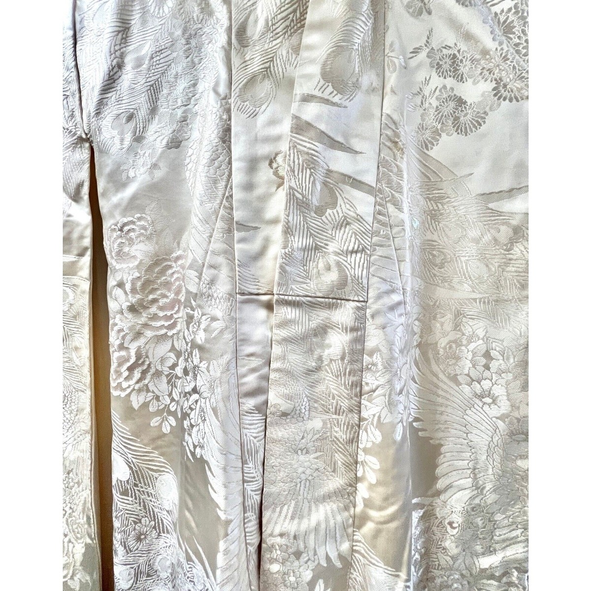VTG Japanese Ivory Silk Damask Uchikake Wedding Kimono Peacock Motif