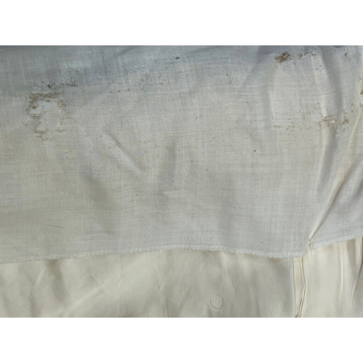Very good vintage condition overall. The silk damask exterior is clean with no staining. There is minor moth-chew damage to the interior bottom protector fabric only, as shown in the photos; this does not affect the visible outer layer when worn or displayed. No other flaws noted.