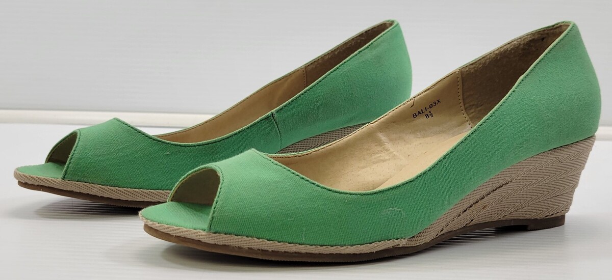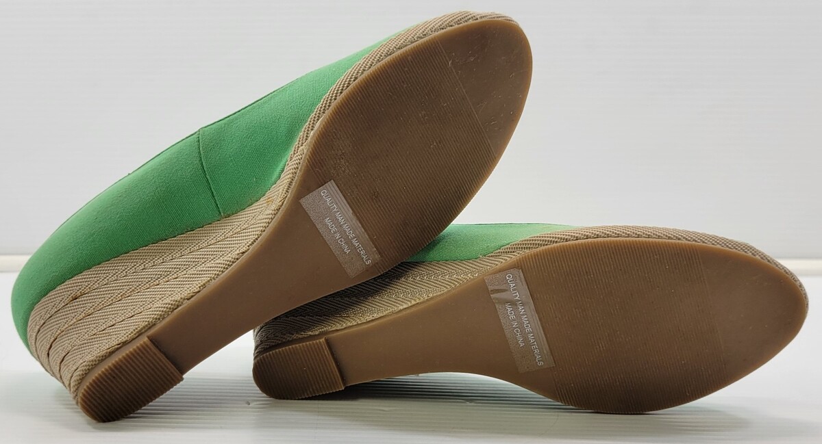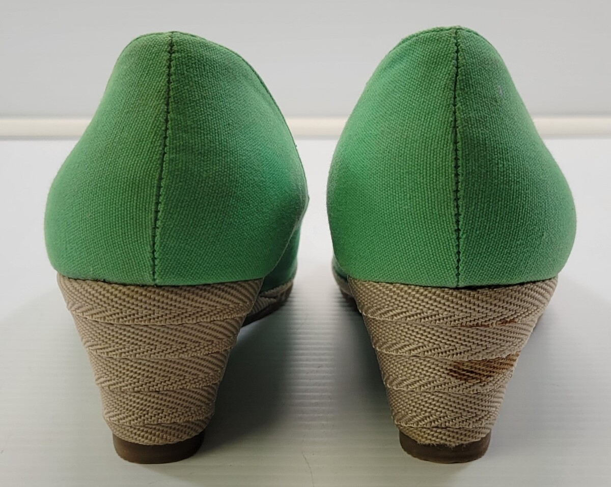 BG) Go Max Woman Bali-03X Wedge Green Canvas Material Heel Shoes 8.5