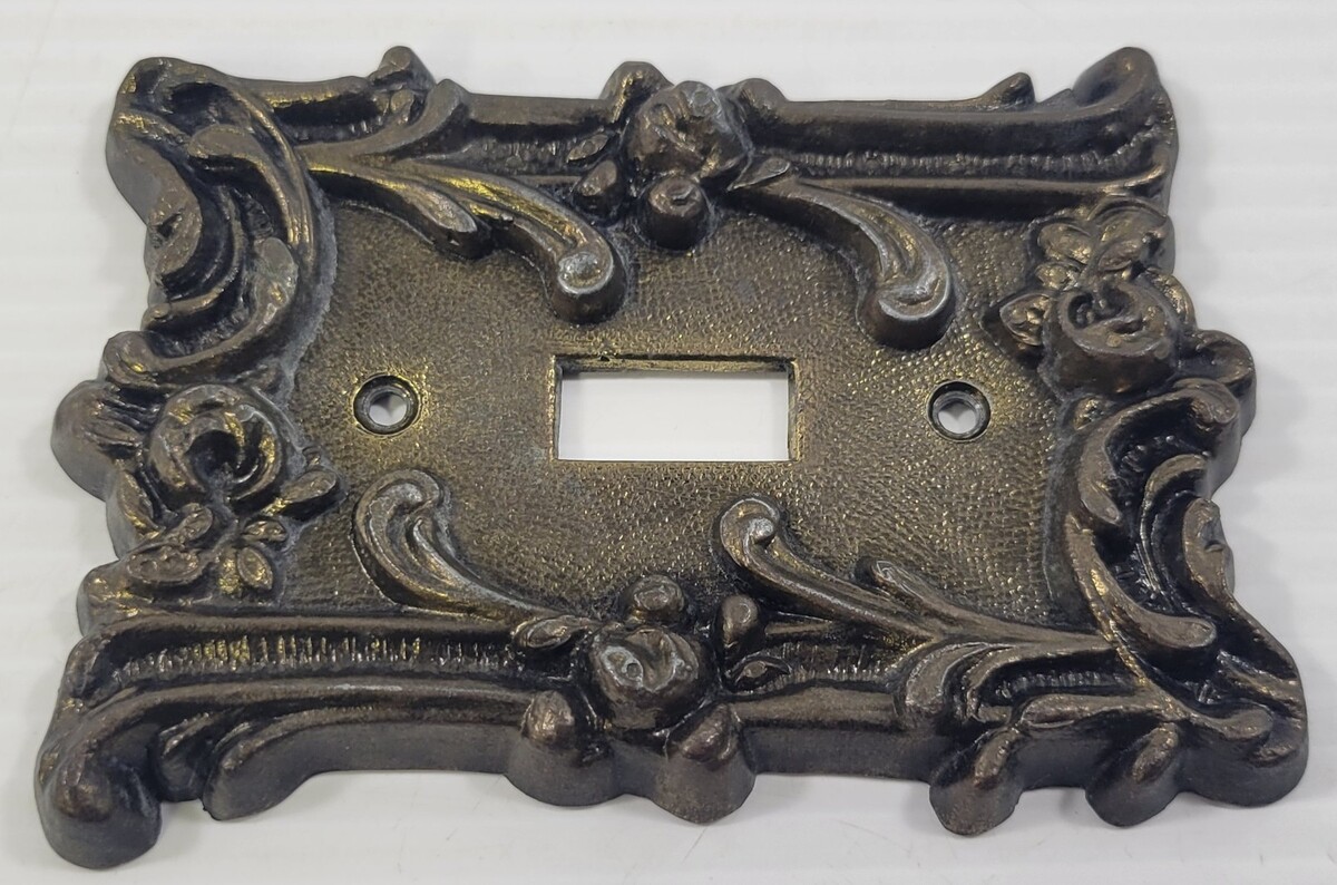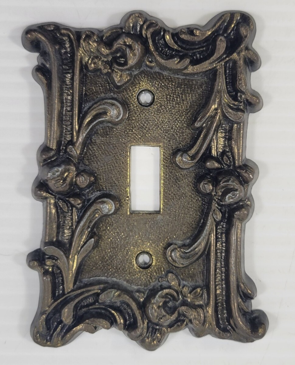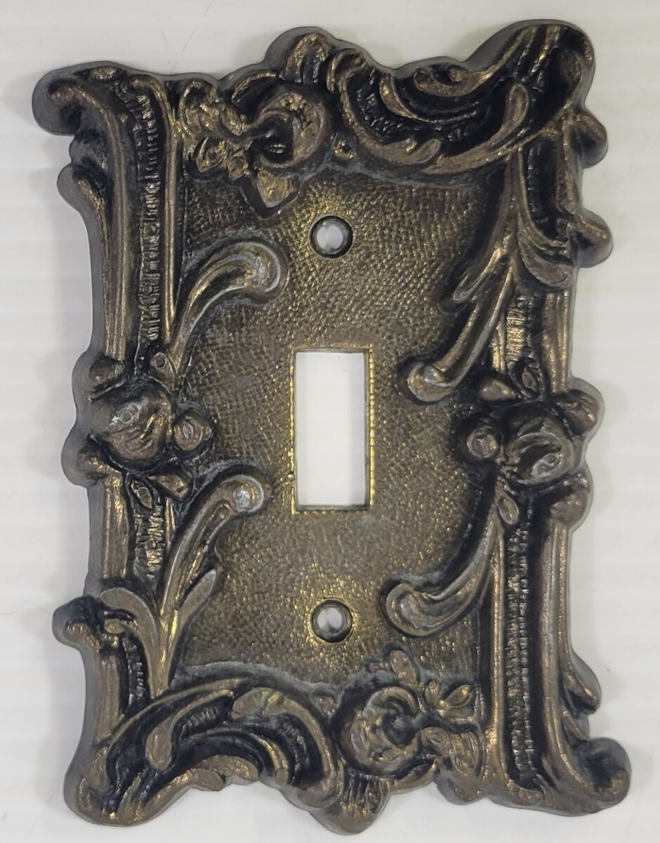 Vintage Gold Tone Thick Brass Metal Floral Light Switch Cover Plate