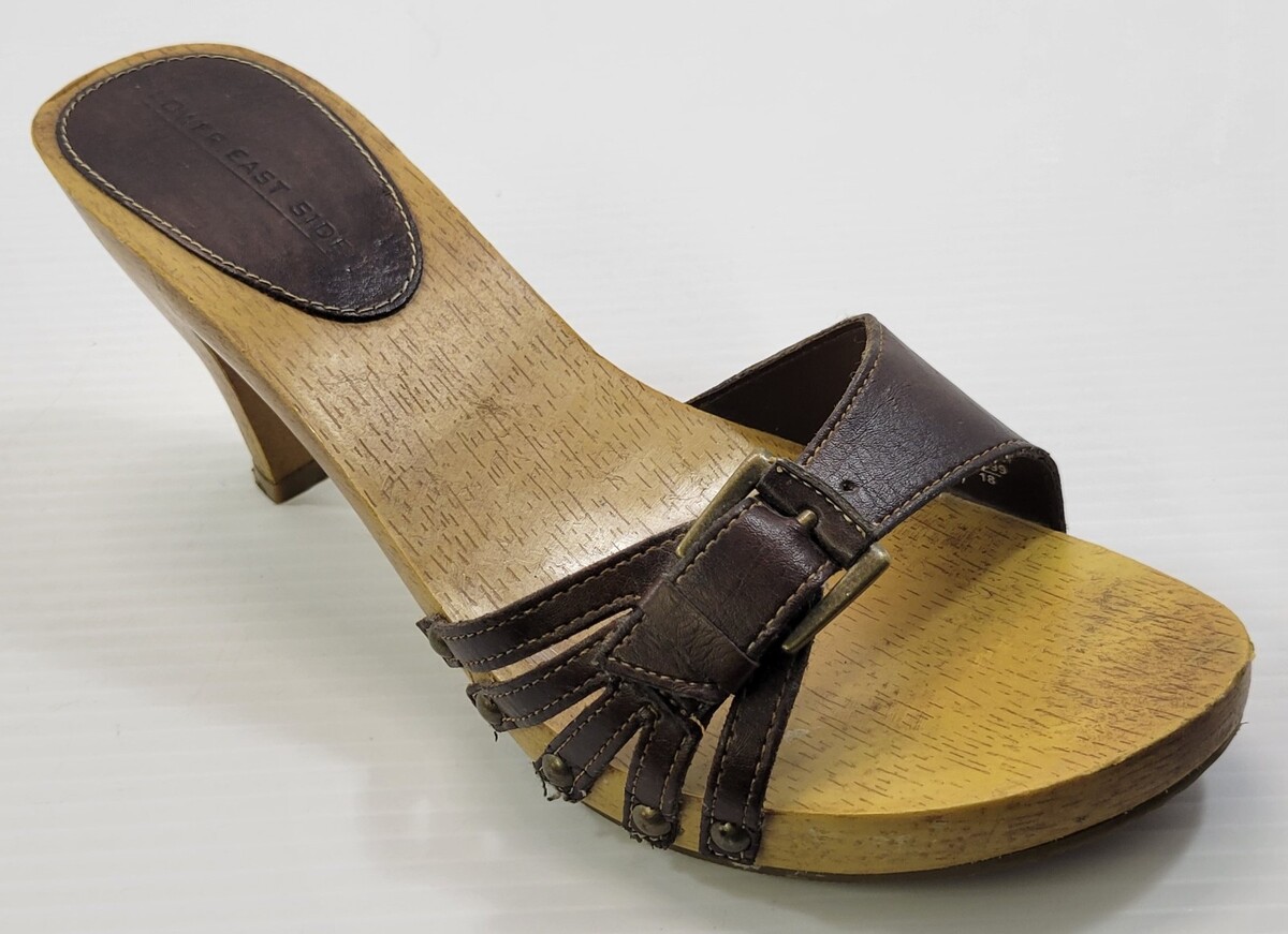 BG) Vintage Lower East Side Woman Wooden Heels Buckle Sandal Shoes Size 8