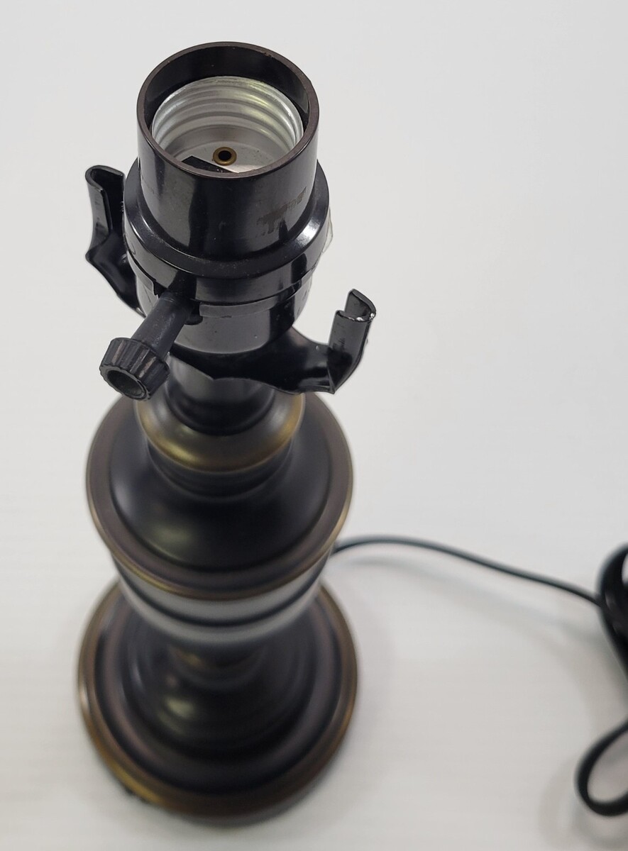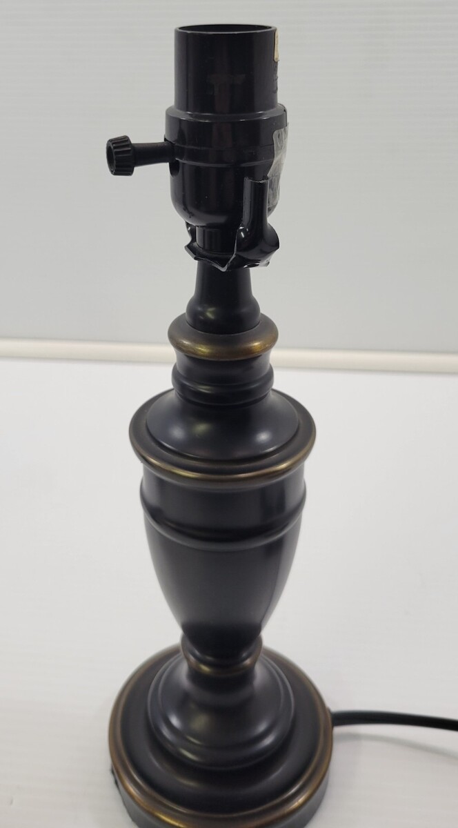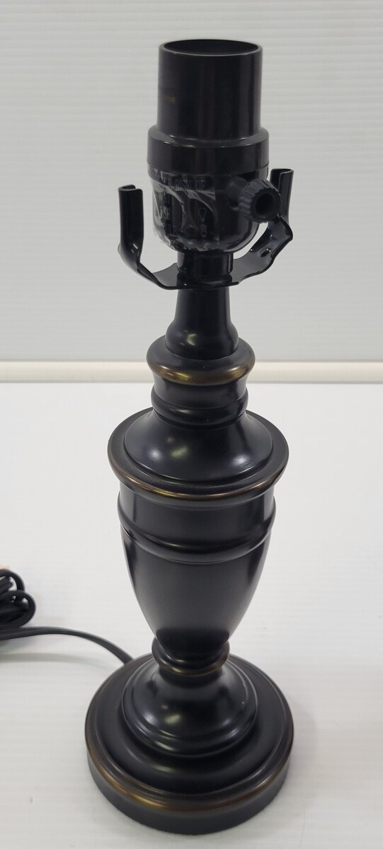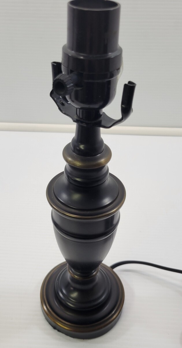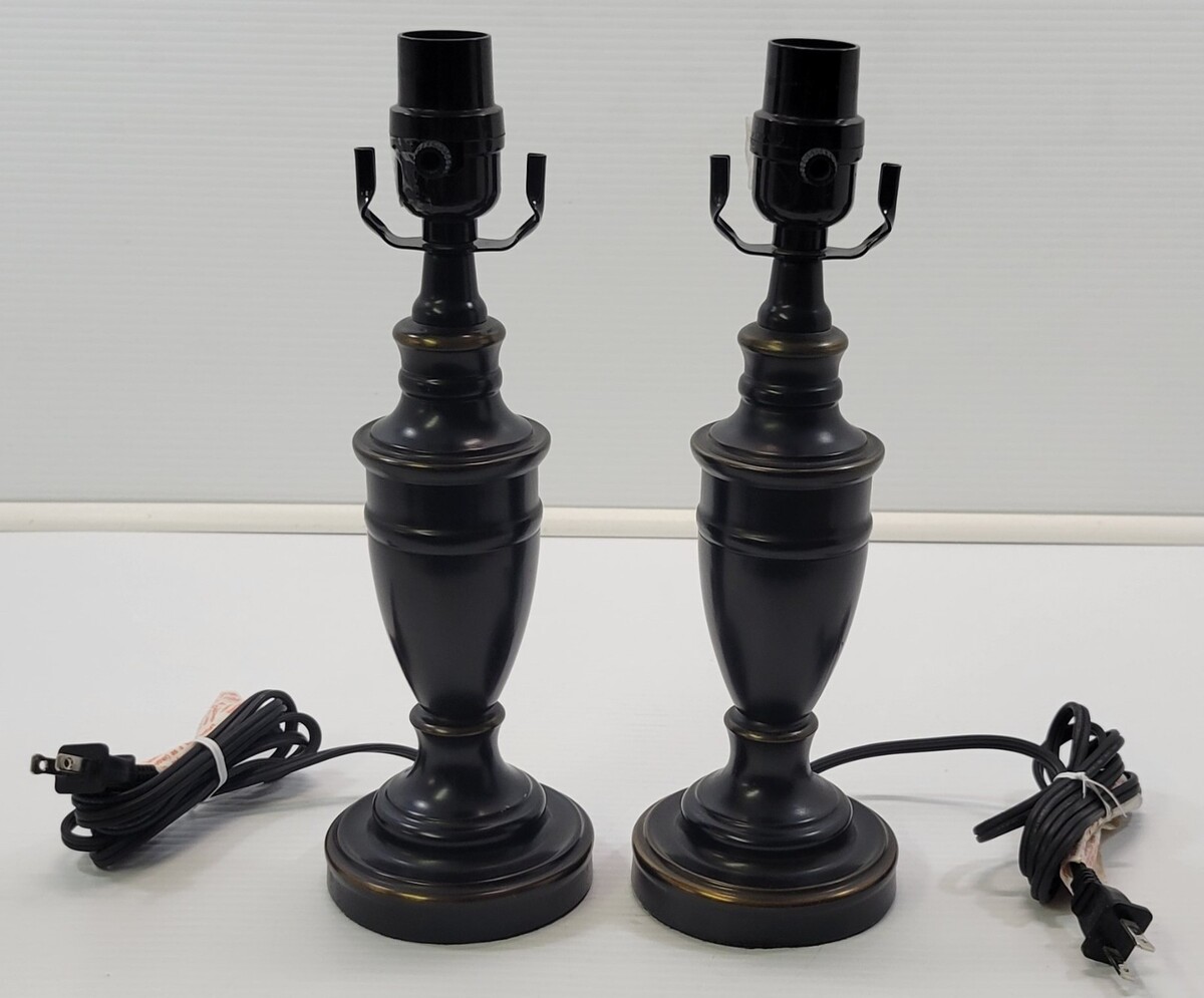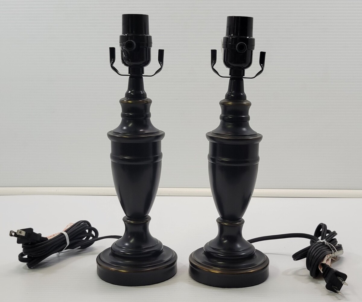 *C) Pair of 2 Dark Brown Black Metal End Table Top Night Stand Lamps