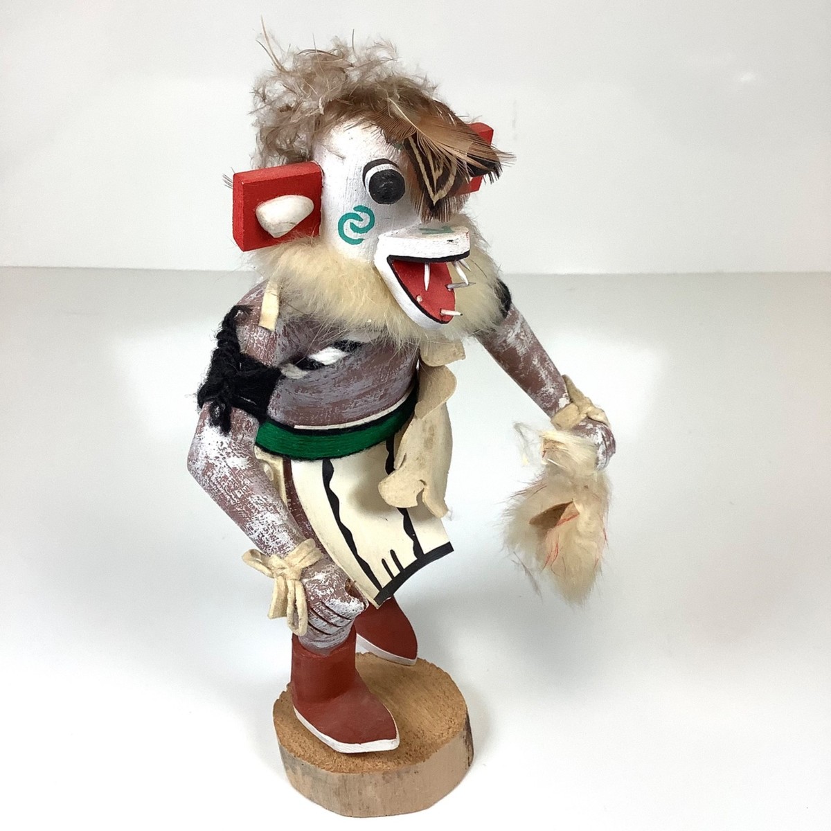 Southwest Ogre Kachina Doll Native American Folk Art Figure Hide Feather 10.25?. Marked