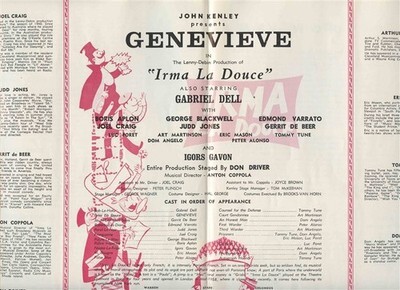 A souvenir program from a John Kenley production of Irma La Douce. From a 1963 production that played in several Ohio cities. Starring Genevieve, Tommy Tune and Gabriel Dell. Souvenir program has 8 pages filled with photos, biographies and more.