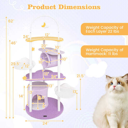 62 Inches Large Cat Tower with Metal Frame and Jumping Platforms-Purple