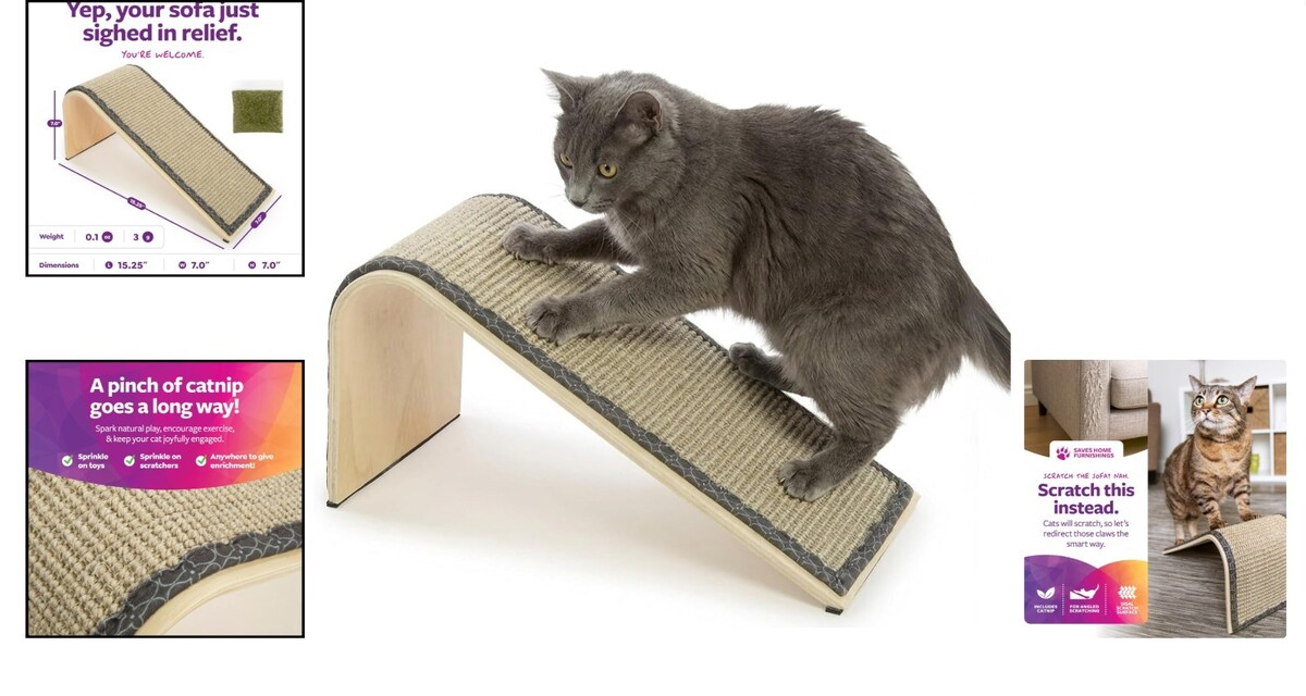 Durable Sisal Scratching Ramp for Cats - Stylish Wood Design Catnip Included