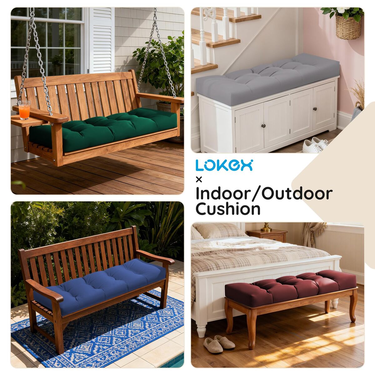 Lokex Outdoor Bench Cushion 4 Inches Thick,Waterproof and Fade Resistant,Tufted