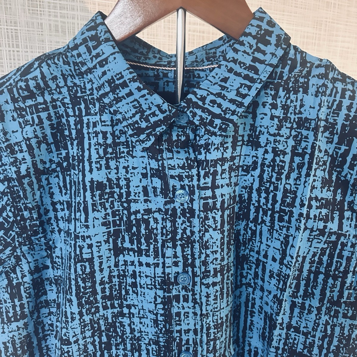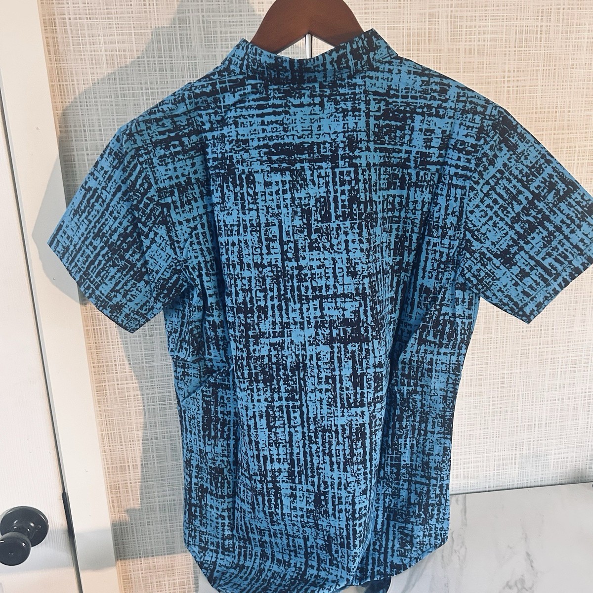 Wildfang Shirt Womens XS Blue Black Weave Abstract SS Essential Button Up BBB