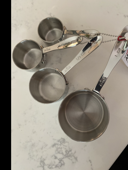 all-clad stainless steel cookware pieces , cups , spoon, fork , other - PICK
