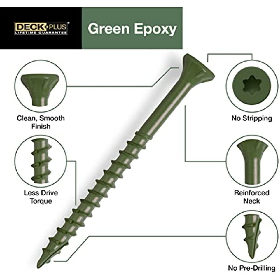 Deck Plus 48396 Wood Screws #8 x 1-1/4", Green, 1lb Box