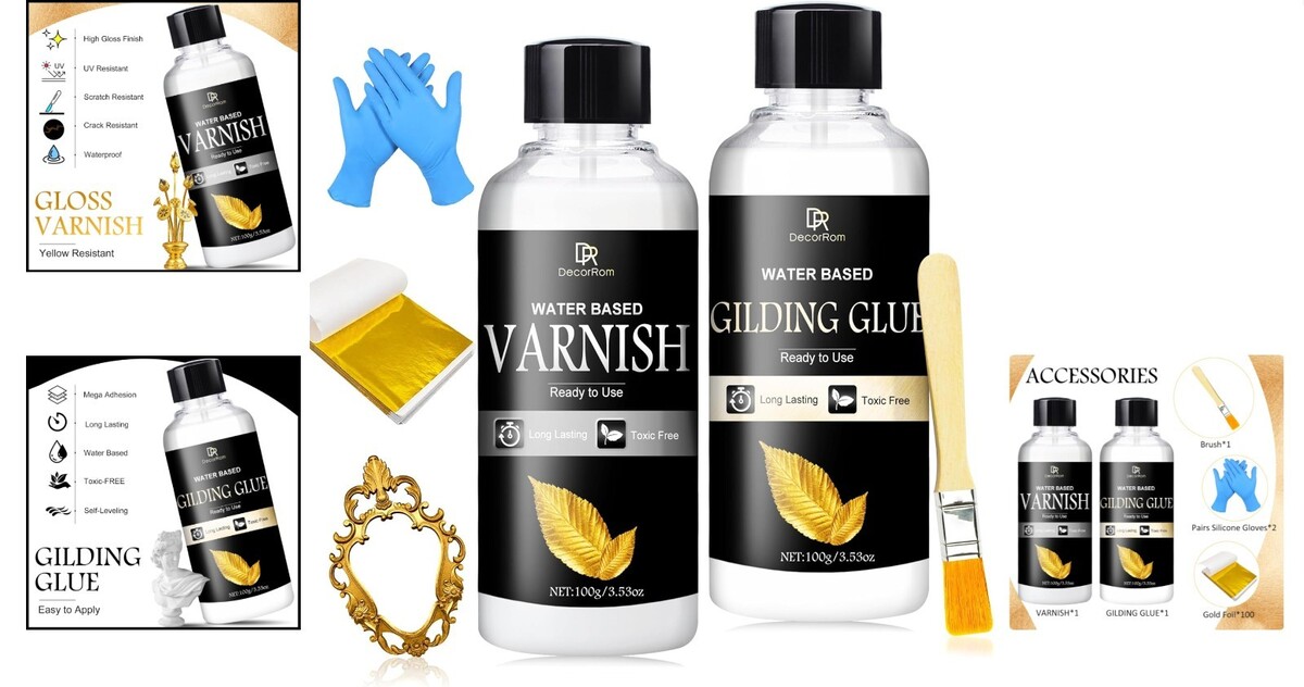 Varnish enhances durability and luster, prolonging the beauty of your gilded creations.