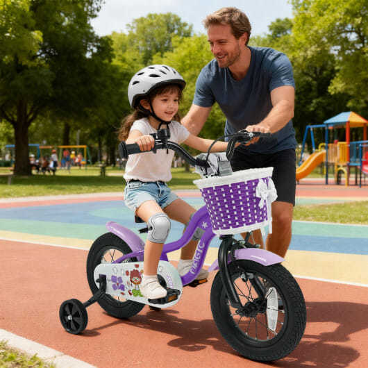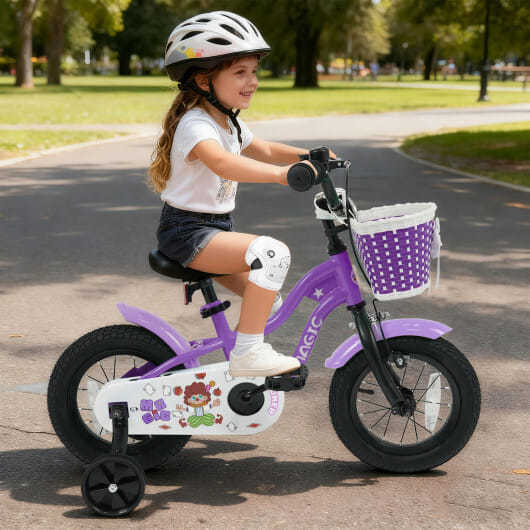 12 Inch Kids Bike with Training Wheels for Aged 3-4 Years Old - Magic Purple - Color: Purple - Size: 12 inches
