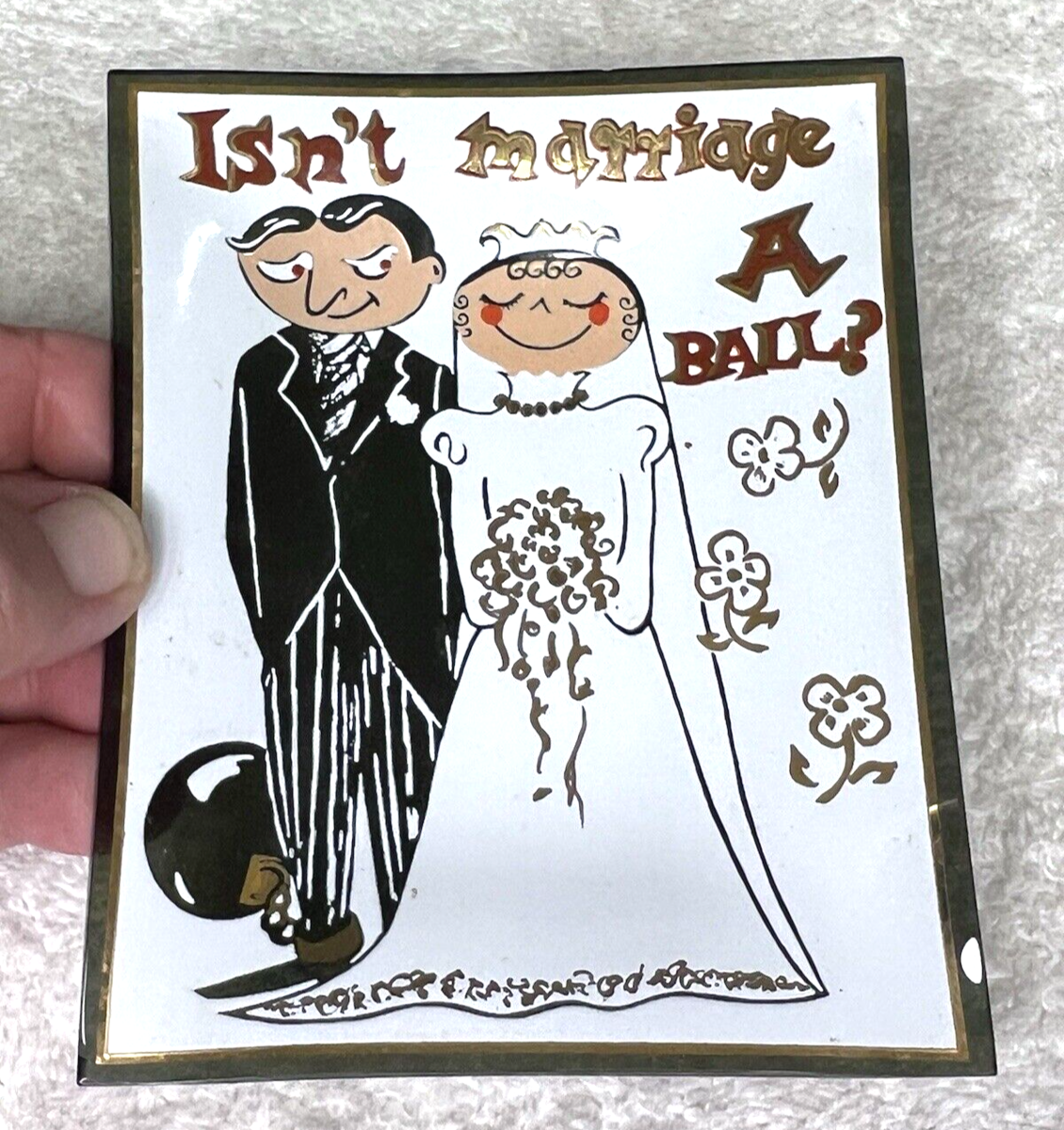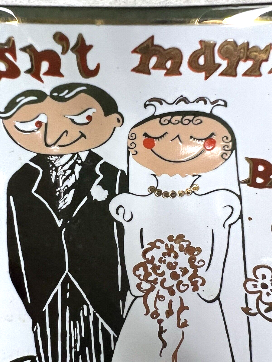 1960s Isn?t Marriage a Ball Bride and Groom Ball and Chain Glass Dish Gag Gift