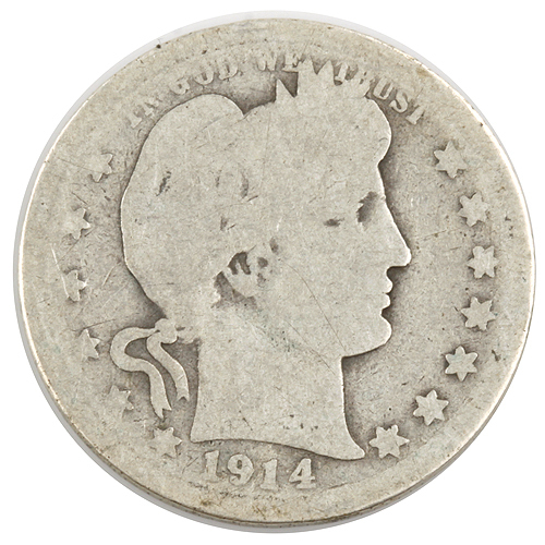 1914-S US Barber Quarter (About Good, AG) San Francisco Key Date Low Mintage 25c