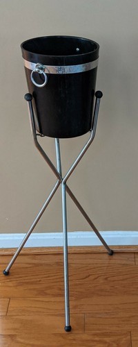A vendre est un seau refroidisseur en plastique noir pour vin Vollrath d'occasion, support en acier inoxydable de 5-3/4 Qt. Mesures : Hauteur : 32 pouces Largeur : 8 pouces