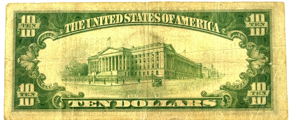 Condition Notes: Uneven margins. Edges are sharp with minor creases. Several major vertical and horizontal folds. Creases and fold lines all over the bill. No rips or tears. Normal discoloration and yellowing from age and use. Staining on both sides of the bill. No graffiti or pinholes. Overall, good condition, with normal signs of aging and wear. As one of the largest Coin Jewelry Companies on the West Coast, and also one of the best gold buyers, Continental has been the destination for coins, jewelry, fine art, and collectible buyers and sellers for over 45 years. Whether you?re looking to buy items or are interested in selling gold and silver for cash, selling coins, or a variety of other collectibles, we are here to help. All items for sale are available for viewing at our Southern