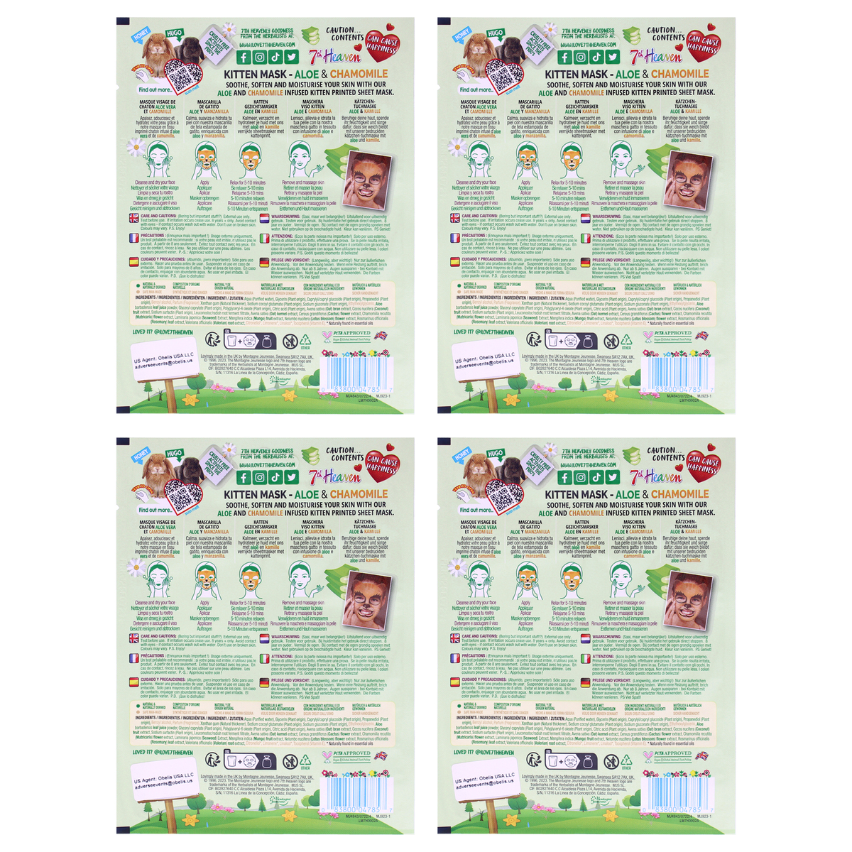 Kitten Sheet Mask Multipack by 7th Heaven for Kids - 4 Pc Mask