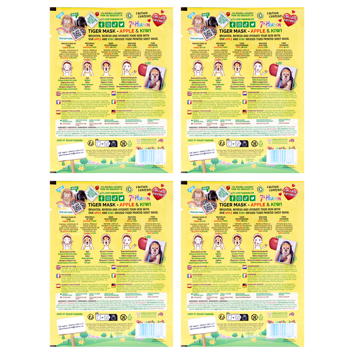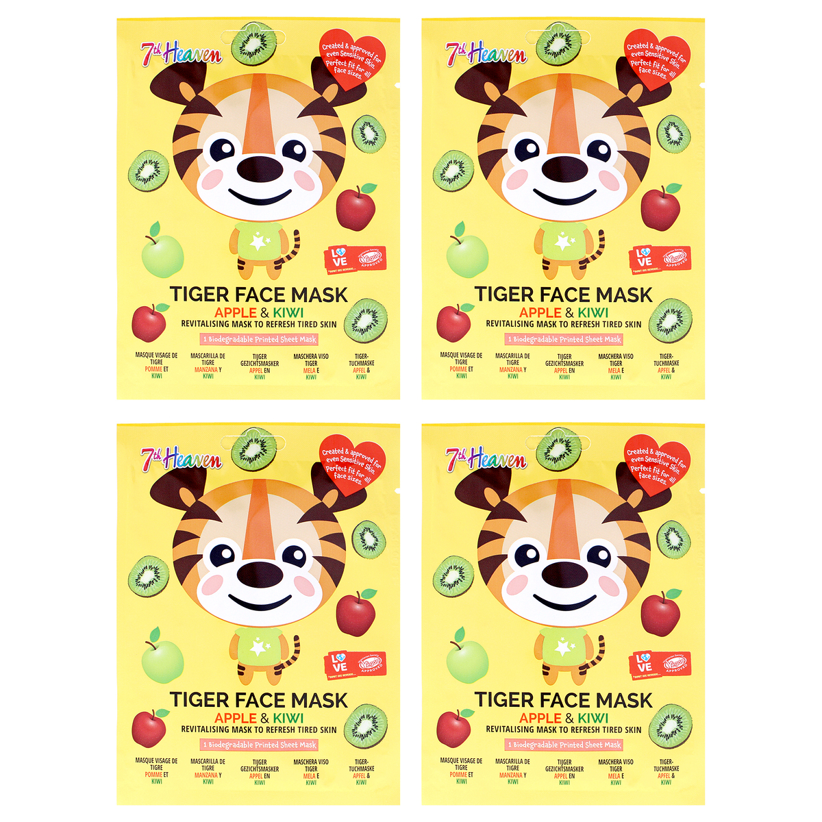 Tiger Face Sheet Mask Multipack by 7th Heaven for Kids - 4 Pc Mask