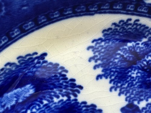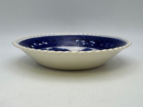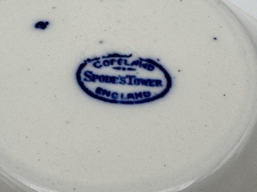 These fruit / dessert bowls measure 5 1/2" in diameter and 1" in height and are in good estate condition with no chips or cracks. Three of the bowls have some crazing. They have a flow blue finish and the old Spode mark.