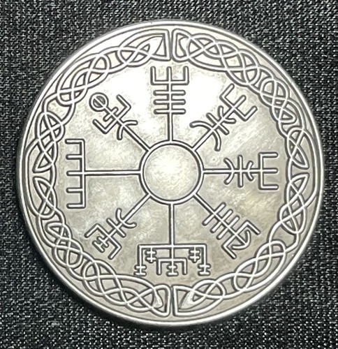 The reverse of the coin features Vegvesir, the Viking compass, which helps to guide travelers through rough weather.