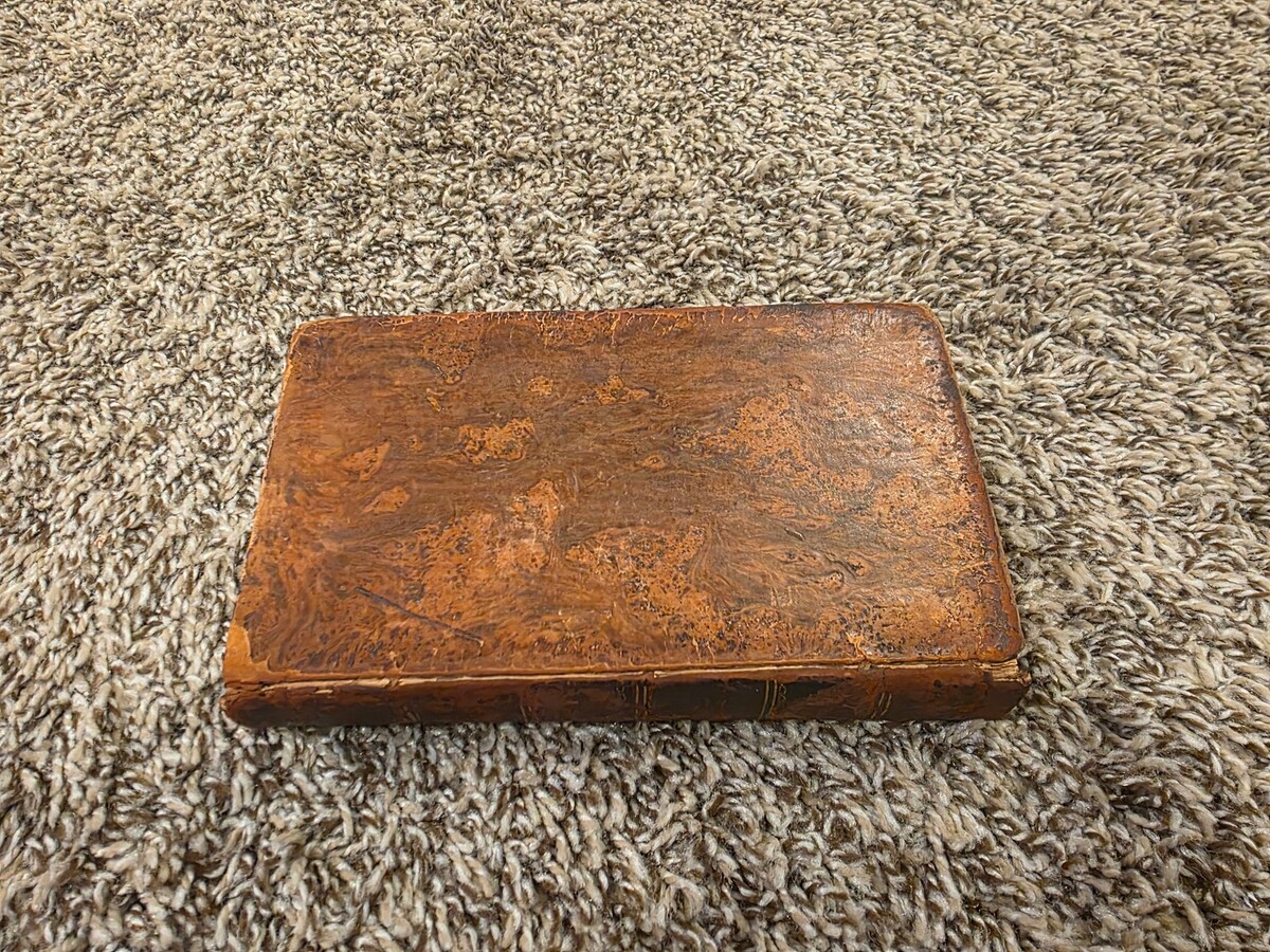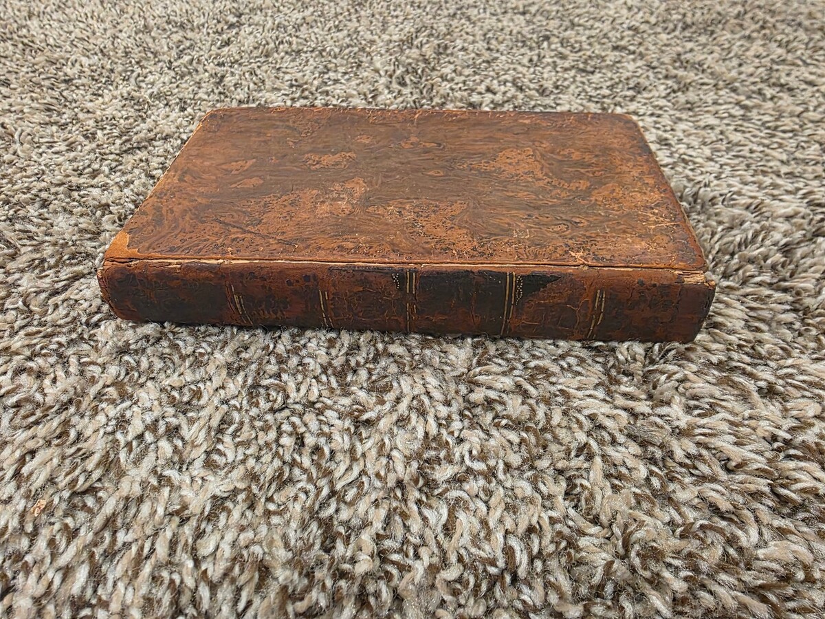 Wear consistent with age, including scuffing and rubbing to the leather binding, edge wear, and foxing/staining to pages. Binding remains intact but shows age. Please review photos carefully for full condition details.